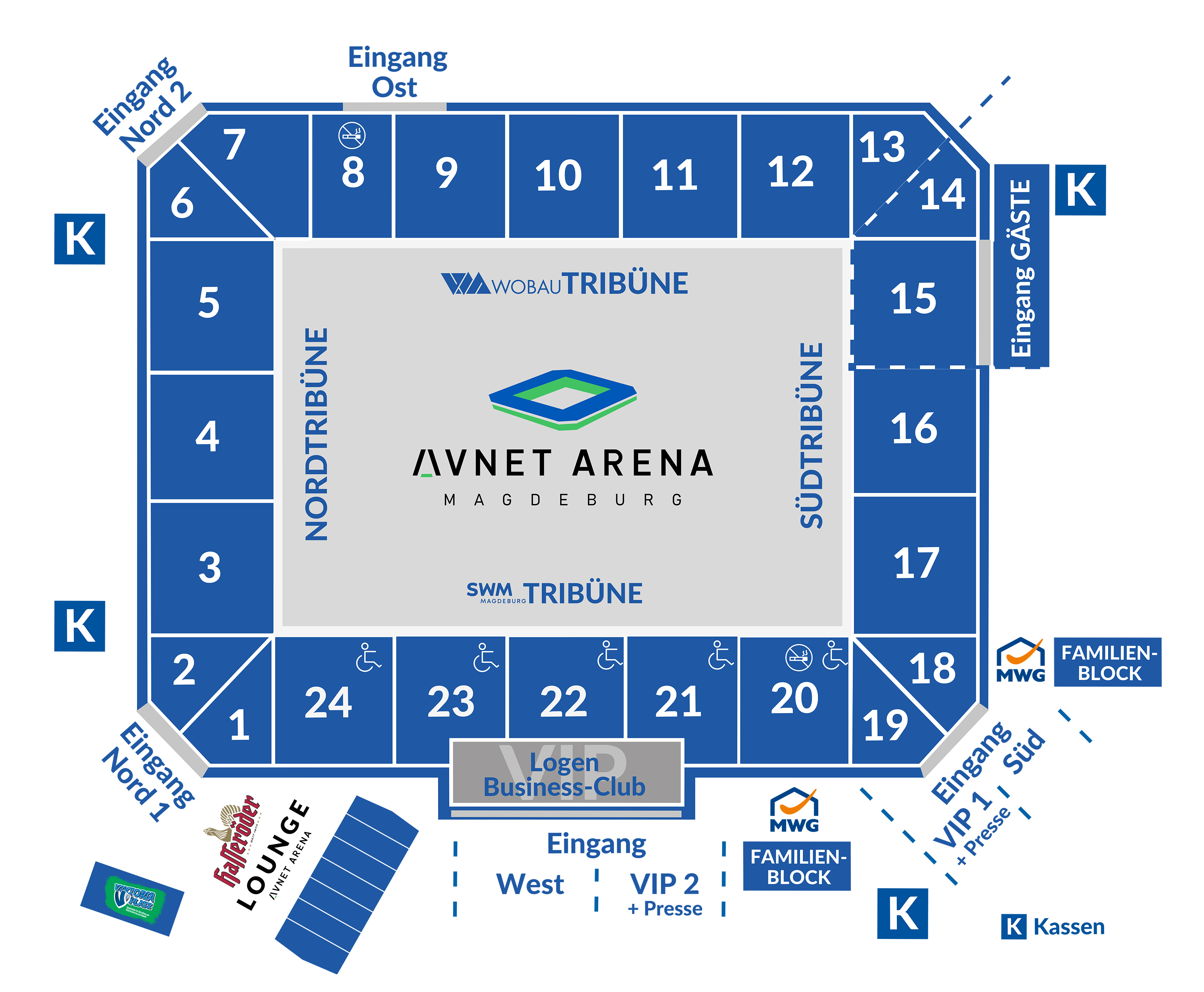 - Taschen/Rucksäcke, welche die Maße 25x25x25cm übertreffen, dürfen nicht mit ins Stadion genommen werden. Es gibt eine beschränkte Taschenabgabe am Gästeeingang.
