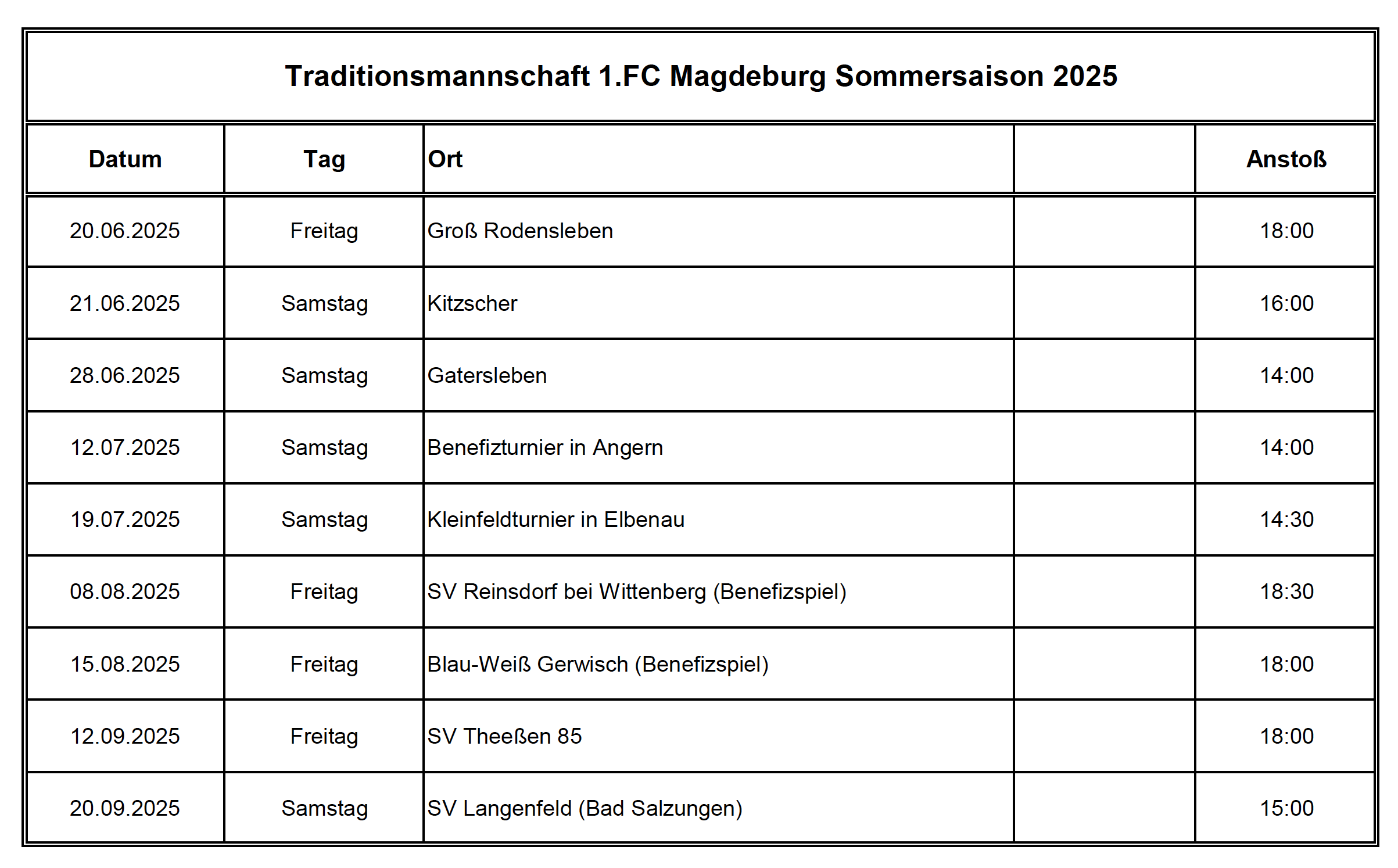 Die Termine der Traditionsmannschaft für das Jahr 2025 im Überblick: