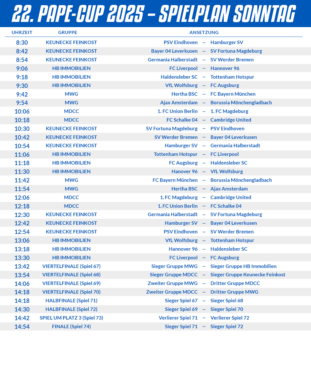 An dieser Stelle bereits ein großes Dankeschön an alle ehrenamtlichen Helfer und alle Unterstützer, die den 22. Pape-Cup traditionell zu einem großen Erfolg werden lassen.