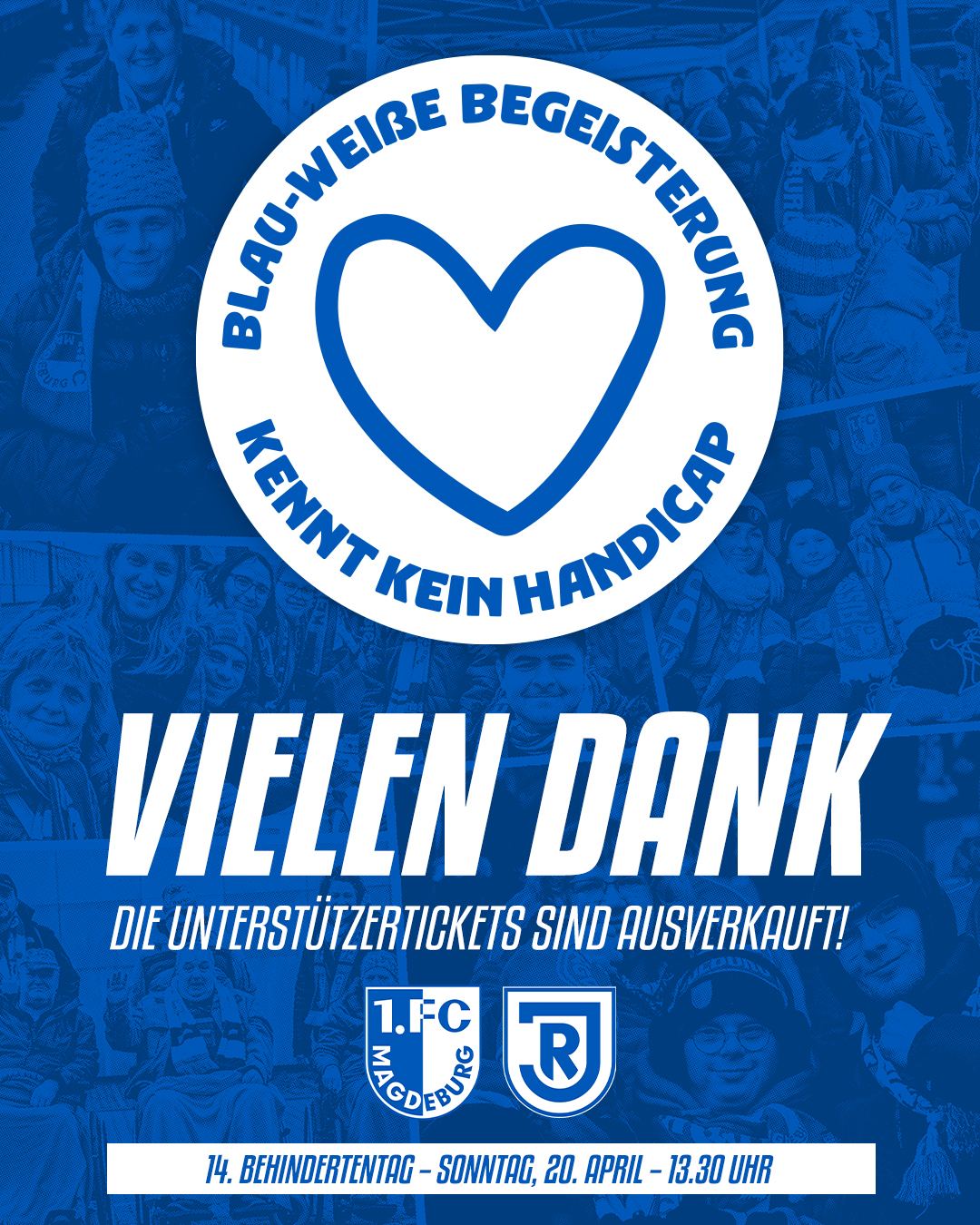 Bereits zum 14. Mal findet unser traditioneller Behindertentag – der größte Inklusionstag im deutschen Fußball – in diesem Jahr statt. Zum Heimspiel gegen den SSV Jahn Regensburg am Sonntag, 20. April, um 13.30 Uhr dürfen wir auch diesmal wieder viele Fans mit Handicap aus zahlreichen Einrichtungen aus ganz Sachsen-Anhalt und über die Landesgrenzen hinaus in der Avnet Arena begrüßen.