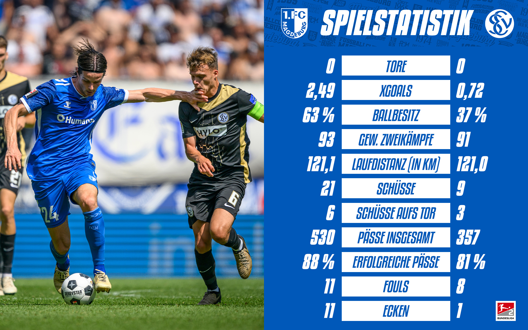 1. FC Magdeburg: Reimann - El Hankouri (60. Hercher), Heber, Hugonet, Musonda – Mathisen, Gnaka, El-Zein (82. Marusic) – Teixeira (90.+2 Ceka), Kaars, Burcu (60. Ito)