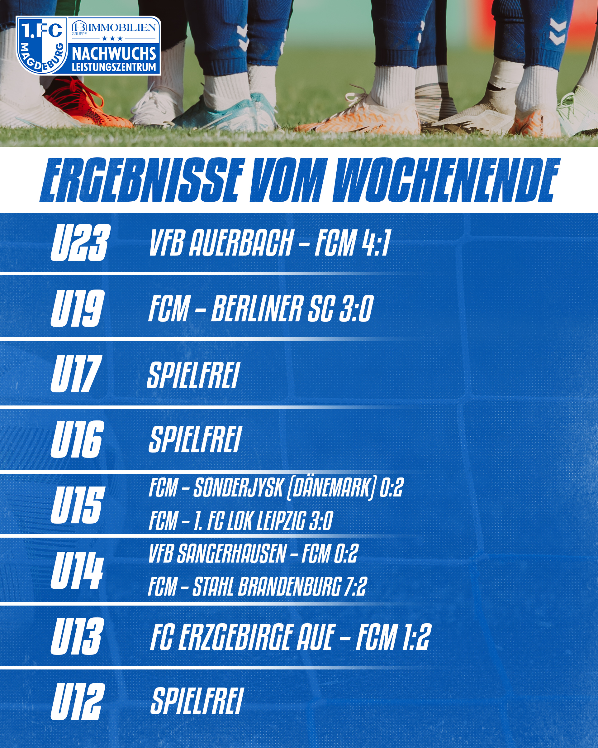 1. FC Magdeburg U19: Güldner – Ruffing, Güllmeister (76. E. Siebert), Eichholz, Elekwa (79. Grabenberg), Schulze (82. Barth), Baars, Reh, Heinrich (82. Köppe), Strobach (59. Bartholome), Mergner