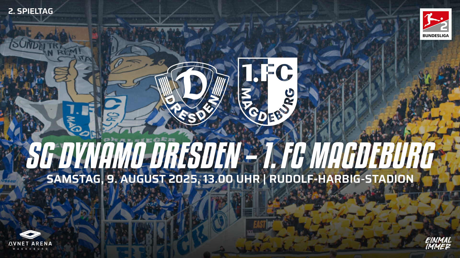 09.08.2025 um 13:00 Uhr gegen die SG Dynamo Dresden im Rudolf-Harbig-Stadion. Uns stehen 2.946 Tickets zur Verfügung.